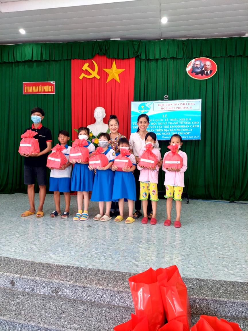 HỘI LHPN PHƯỜNG 8 THÀNH PHỐ VĨNH LONG TỔ CHỨC QUỐC TẾ THIỀU NHI 1/6 CHO TRẺ EM KHUYẾT TẬT, TRẺ EM CÓ HOÀN CẢNH KHÓ KHĂN TRÊN ĐỊA BÀN PHƯỜNG 8 NĂM 2023 VỚI CHỦ ĐỀ “LẮNG NGHE TRẺ EM NÓI”